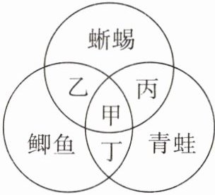 8. 右图中圆圈表示蜥蜴、鲫鱼、青蛙本身具有的特征,重合部分表示它们的共同特征。下列分析正确的是(