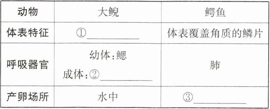10. 大鲵和鳄鱼都是既能生活在水中,又能生活在陆地上的动物。请回答下列问题。