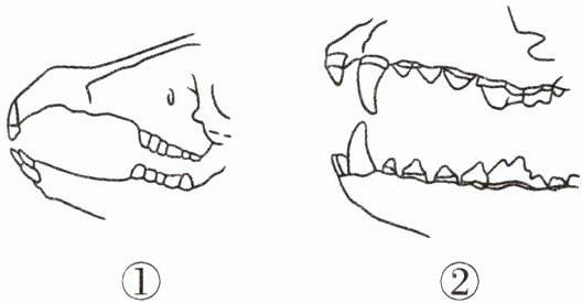 9. 右图为兔和狼的牙齿,下列叙述错误的是(