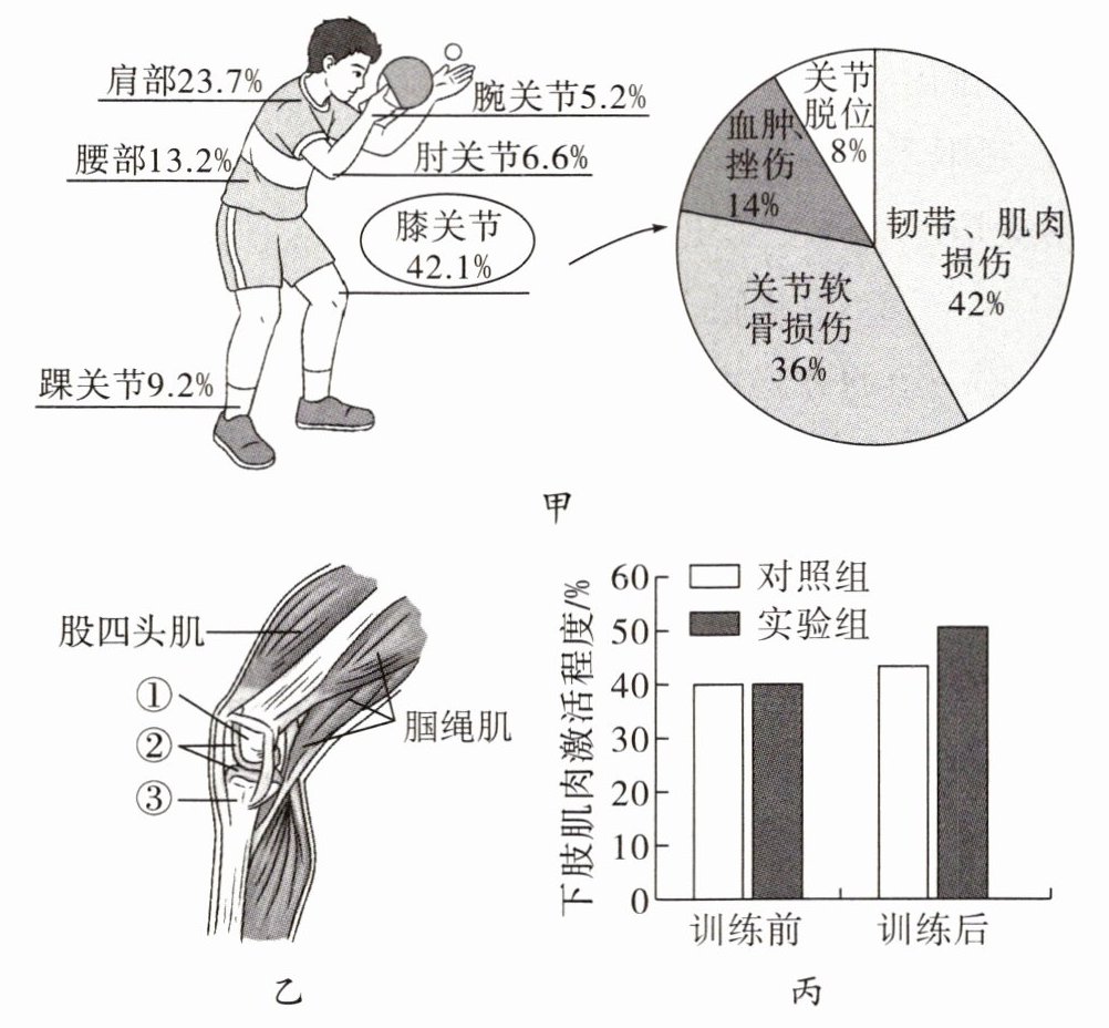 11. 为采取有效措施减少运动损伤,科研人员调查了青少年乒乓球运动员的损伤特征,结果见下图。据图回答下列问题。
