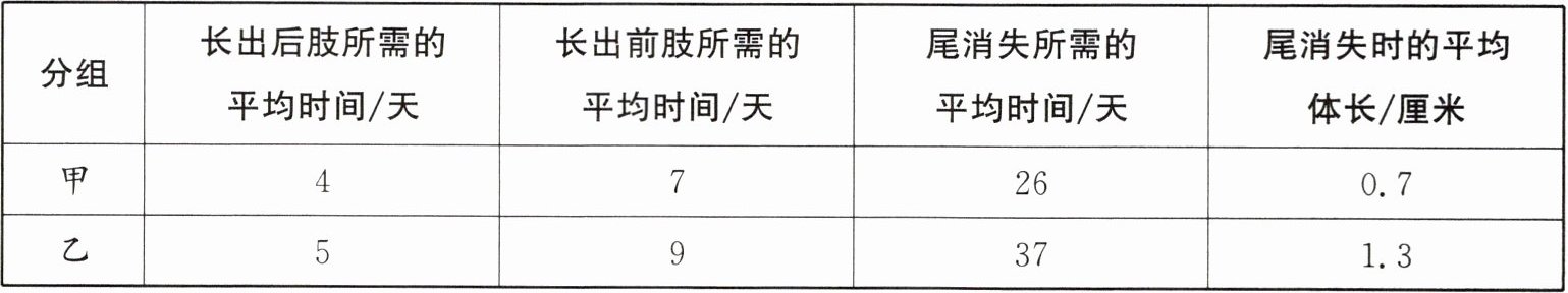 步骤三:每天观察甲、乙两个水槽中蝌蚪的发育情况,并进行记录。