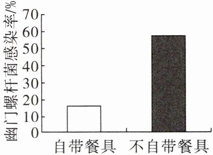 7. 由幽门螺杆菌引起的疾病在我国呈现明显的家庭聚集性传播现象。幽门螺杆菌是通过什么途径传播的呢?生物学小组的同学进行了研究,结果如右图所示。据此推测,幽门螺杆菌可通过(