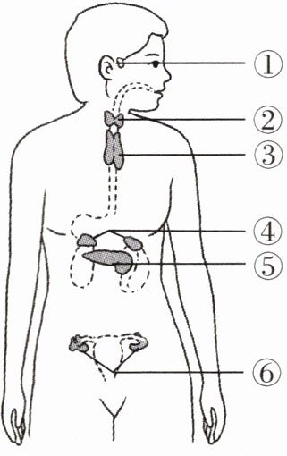 【典型例题 3】下图是人体主要的内分泌腺示意图,据图回答下列问题。