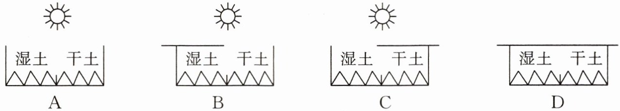 3. 在校园阴暗的环境里,如在花盆或者砖块底下,常常能遇见一些小动物,例如鼠妇。兴趣小组的同学想要探究水对鼠妇生活是否有影响,在下列的四个实验装置中,应该选择(