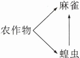 B 【解析】该食物网包含2条完整的食物链,农作物→蝗虫→麻雀,农作物→麻雀。能量流动是单向的、逐级递减的,该食物网中能量损失最少的食物链是农作物→麻雀。从长远角度分析,剿灭麻雀会使蝗虫增多,不利于提高农作物产量。