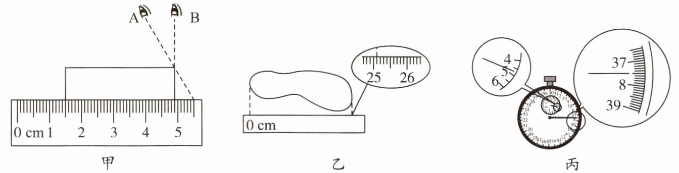 (选填“A”或“B”)。(2)谦谦使用如图乙所示的刻度尺测量自己的鞋长为