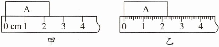 3. 如图所示,用分度值不同的刻度尺测量物体A的长度。图甲中,物体A的长度为
