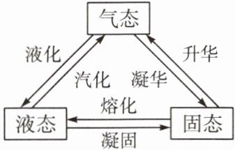 3. 自然界中的物质通常有三种状态,在一定条件下它们之间可以相互转化,转化情况如图所示。根据图中知识,下列描述正确的是(