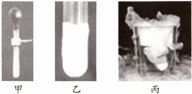 (2)取一块干冰放入常温下的水中(如图丙所示),杯中的水立即“沸腾”了,水中有大量气泡上升。并且在杯口出现大量“白气”,形成“白气”的物态变化是