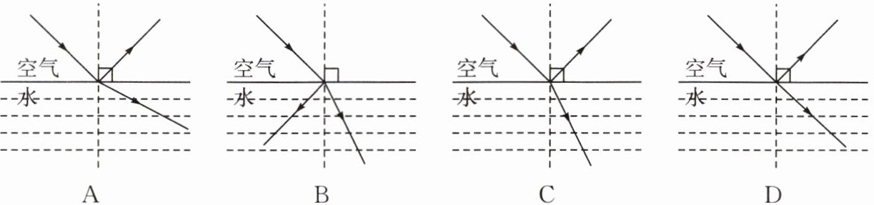 1. 下列能够正确表示光从空气斜射到水中的光路的是(