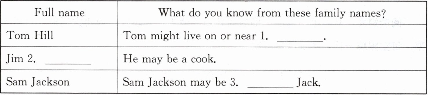4. Family names may come from the places of homes, jobs or fathers' first names.