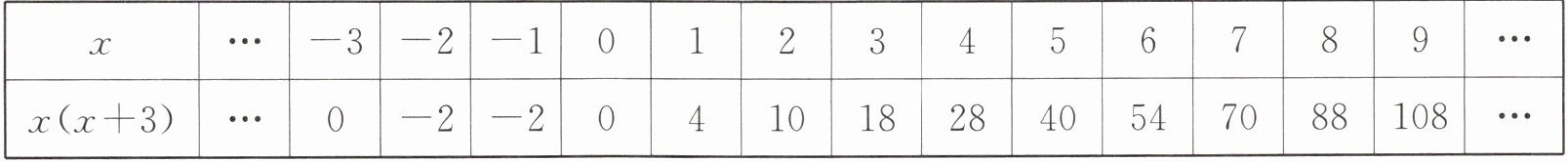 12. 代数式$x(x+3)$中字母$x$与其对应的代数式的值,部分列表如下.