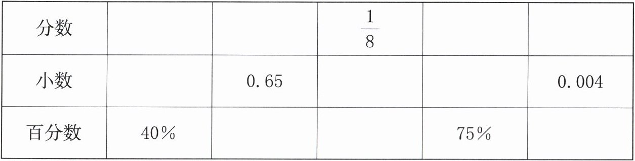 | 小数 | 0.4 | 0.65 | 0.125 | 0.75 | 0.004 |