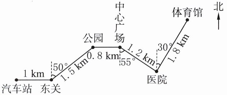 )km,到达公园。(2) 5路公共汽车从中心广场出发,先向东偏(