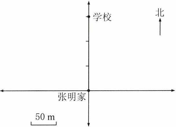 )m。(2) 商店在张明家的东面100m处。小红家在张明家的西面150m处。请在图上找到商店和小红家的位置,并用文字标明。