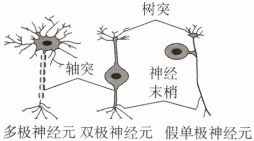 )A.3 种神经元形态相似,树突通常短而粗,用来接收信息并将其直接传向其他神经元、肌肉或腺体