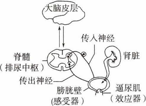 (3)排尿反射的高级中枢在大脑皮层,低级中枢在脊髓,在一定情况下,高级中枢大脑皮层会失去对低级中枢脊髓的控制,说明高级中枢对低级中枢的控制具有相对性。
