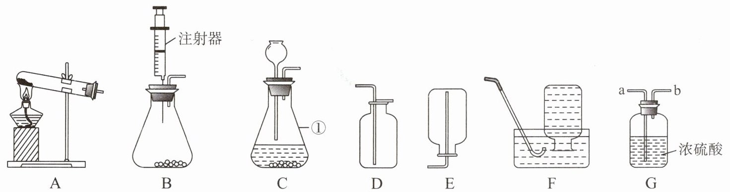 。③若把 G 装置中的浓硫酸换成水并盛满,用来收集难溶于水的气体时,气体从