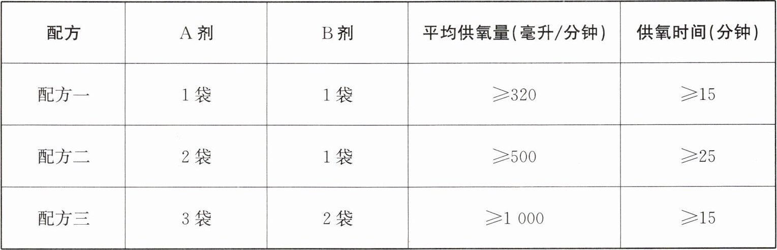 (5)制氧机制氧说明(部分)见下表,其中 A、B 剂的成分是过碳酸钠或二氧化锰。