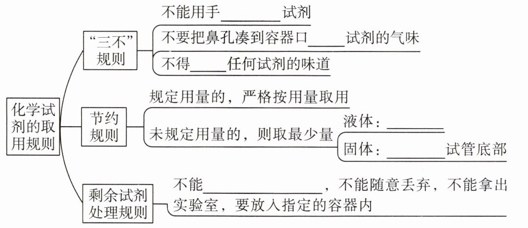 接触 闻 尝 1~2 mL 铺满 放回原瓶