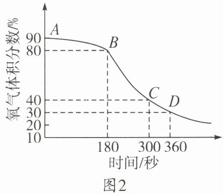 (1)按图 1 连接好实验装置,打开氧气传感器,测得前 3 分钟曲线为图 2 中 AB 段,请从分子的性质角度回答氧气体积分数下降的原因: