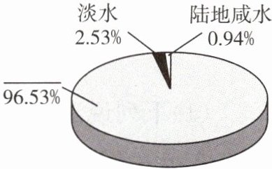 (2)地球咸水、淡水的储量比。(如右图所示)