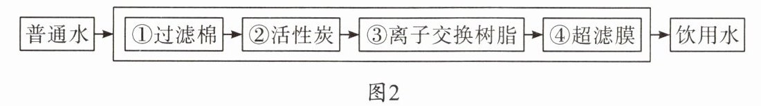 6. “生命吸管”是一项重要发明(如图 1),用它可以在野外极限环境中解决饮水问题,主要原理与自来水的净化过程相似(如图 2,③中离子交换树脂的主要作用是去除重金属离子、软化水质)。