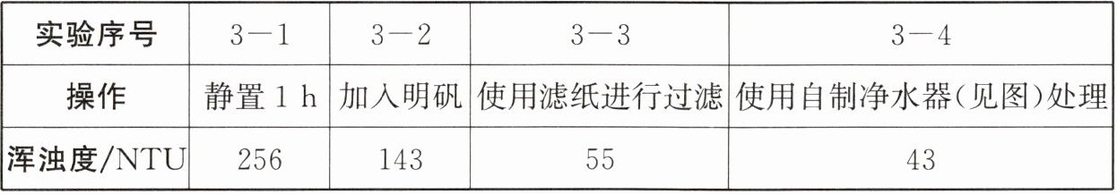 (5)初始水样的浑浊度相同,实验3—4比3—3中净化后的水样浑浊度低