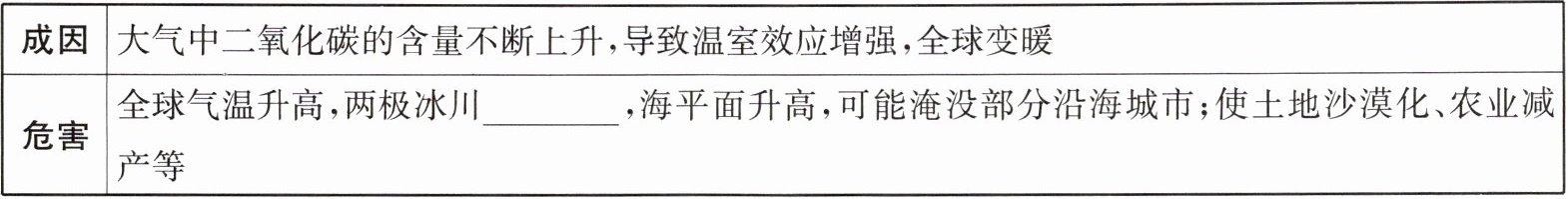 二氧化碳对我们的环境与生活有什么影响呢?温室效应增强有哪些危害?阅读教材中有关内容后填空。