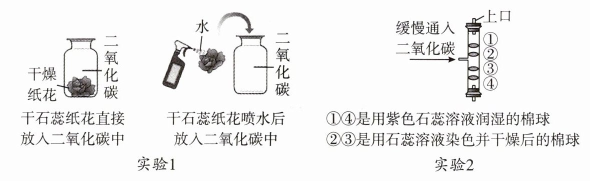 (1)实验1中干石蕊纸花喷水后放入二氧化碳中,观察到的现象是