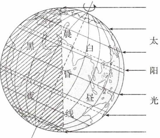 (3) 昼夜交替现象产生的原因:地球不停地自西向东自转,昼夜也就不断