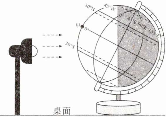 4. 缓缓拨动地球仪旋转180°,会发现图中甲点(