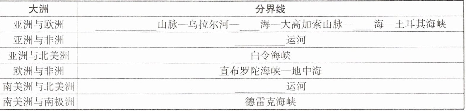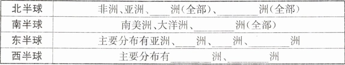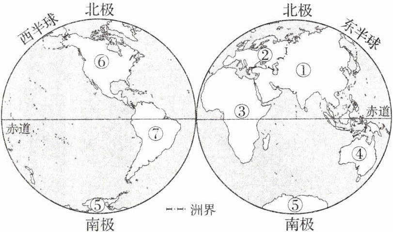 二、2.亚 非 北美 南美 南极 欧 大洋