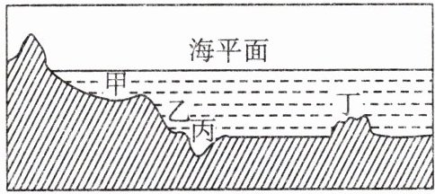 5. 右图为某海域海底地形剖面示意图,甲、乙、丙、丁四处地形依次是(