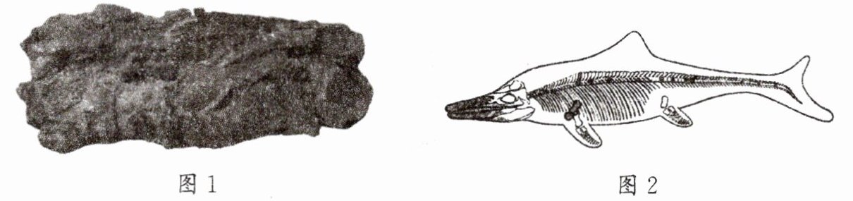 (2023·山西太原中考)2023年5月,我国科研人员在西藏发现了一批三叠纪喜马拉雅鱼龙化石,这是古生物学上的又一次重大发现。图1是喜马拉雅鱼龙化石,图2是喜马拉雅鱼龙复原图。据此完成第5~7题。