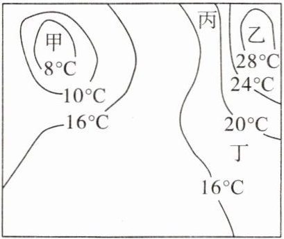 B. 丙地是低温中心