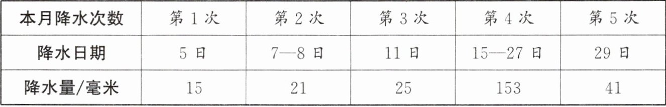 某中学地理兴趣小组观测当地某月全部5次降水过程,并记录了降水量(见下表)。当地年平均降水量约为1100毫米。据此完成第1~2题。