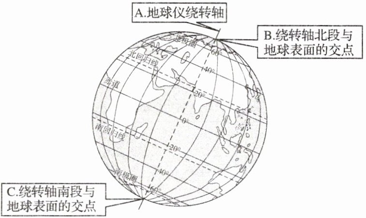 C.地球仪上的地轴是人们假想的轴,地球上并不存在