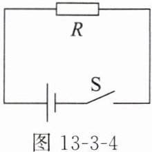 7. 图 13 - 3 - 4 是超市常用的塑料袋封口夹的工作原理图,电源电压为 $ 5 V $,电热丝 $ R $的阻值为 $ 1 \Omega $。闭合开关 $ S $,电热丝 $ R $的温度升高,利用电流的