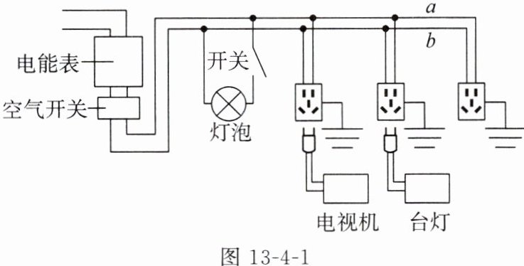 1. 某家庭电路简化后如图 13 - 4 - 1 所示,该电路各部分连接均正确,由此可知(
