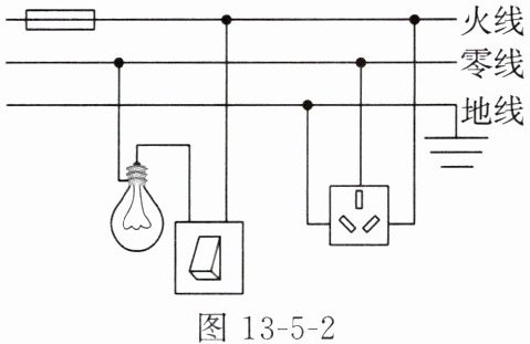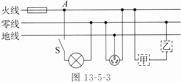 7. 图 13 - 5 - 2 是小明设计的部分家庭电路,下列说法正确的是(