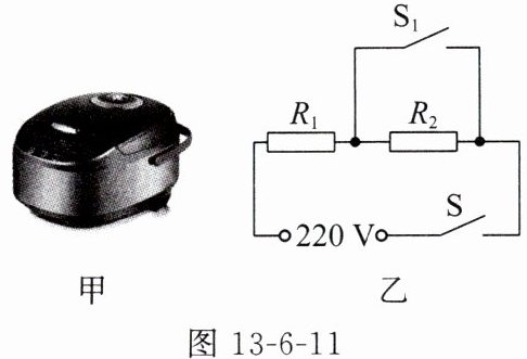图13 - 6 - 11甲是芳芳家新买的一款多功能电饭锅,图13 - 6 - 11乙为该电饭锅的工作原理图,$R_1和R_2$均为阻值不变的电热丝,且$R_2 = 800\ \Omega$,$S$为手动开关,$S_1$为自动控制开关,多功能电饭锅的部分参数如下表所示。