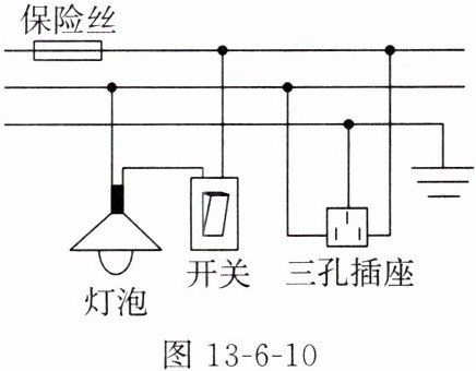 图13 - 6 - 10是小军家的电路的一部分。他闭合开关时,灯泡正常发光,再将笔记本电脑的插头插入插座中时,灯泡突然熄灭,检查发现保险丝熔断了,其原因可能是(