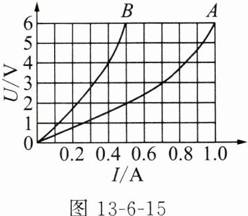 6. $A$、$B两个小灯泡的额定电压均为6\ V$,它们的$U - I$关系图像如图13 - 6 - 15所示,则下列说法正确的是(