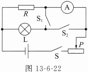 $W$。(3)小月设计了一个电路,如图13 - 6 - 22所示,也测出了该小灯泡正常发光时的电功率,其中定值电阻的阻值$R = 25\ \Omega$,操作步骤如下: