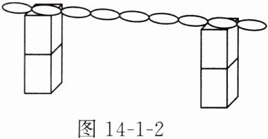 5. 学了磁现象之后,小明将数枚一元硬币放在两个平行放置的条形磁体上,搭成了一座漂亮的“硬币桥”,如图14-1-2所示,中间部分的硬币虽然没有直接接触磁体,但是也具有磁性,这利用了