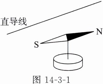 1. 图 14-3-1 是某同学做“探究通电直导线周围是否存在磁场”实验时所用的实验装置。通电后,小磁针发生了偏转。关于这个实验,下列说法正确的是(