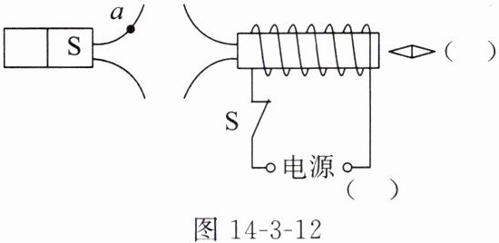 3. 如图 14-3-10 所示,请标出闭合开关后螺线管右端的磁极极性(标“N”或“S”)。