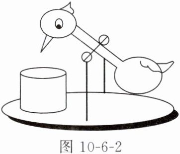 6. 图 10 - 6 - 2 展示了一种玩具——饮水鸟,它的神奇之处在于:在鸟的面前放上一杯水,鸟就会俯下身去,嘴浸到水里,“喝”了一口后,又直立起来;可是直立一会儿它又会俯下身去,嘴浸到水里,“喝”了一口后,又会直立起来……饮水鸟这种“自动喝水”的现象