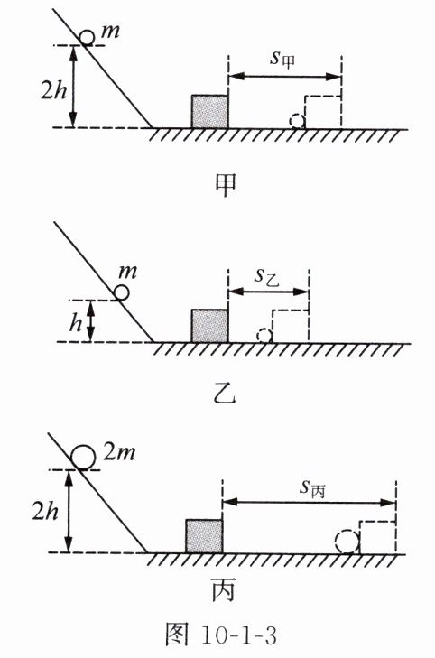 6. 为了探究影响动能大小的因素,实验小组利用斜面、钢球、木块等器材在同一水平面上开展了如图10-1-3所示的探究实验。